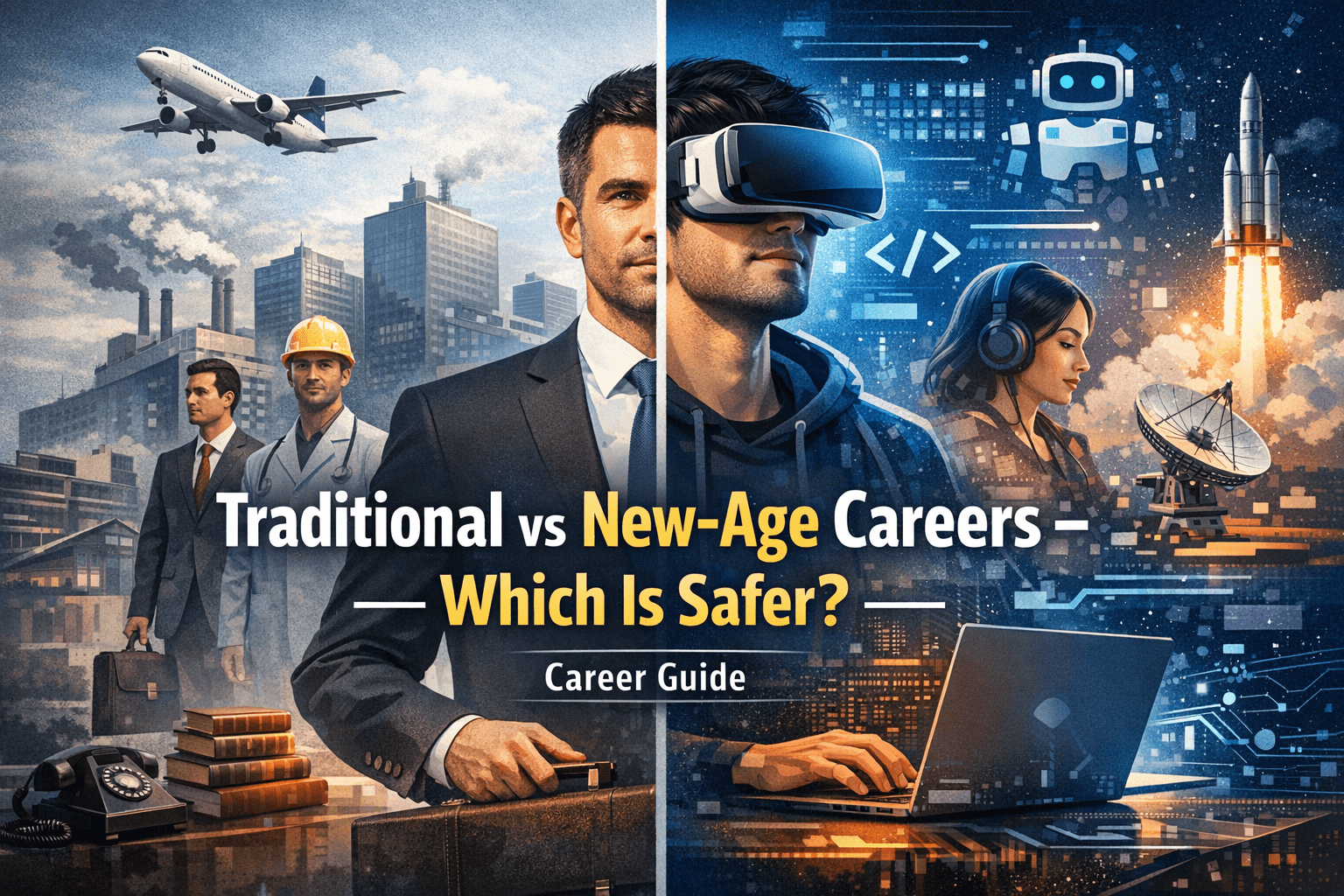 This comprehensive guide breaks down traditional vs new-age careers with clarity, data, and practical career strategy—helping you choose the right path for long-term success, not just short-term comfort.